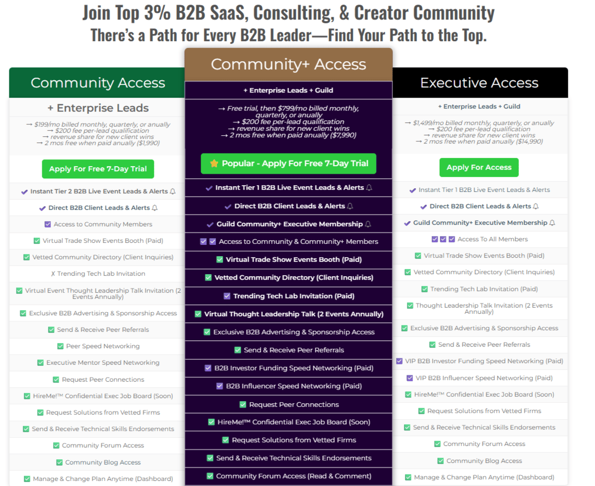 Join the Top 3% SaaS, Consulting & Creator Community – Choose Your Plan - There’s a Path for Every B2B Leader—Find Your Path to the Top.